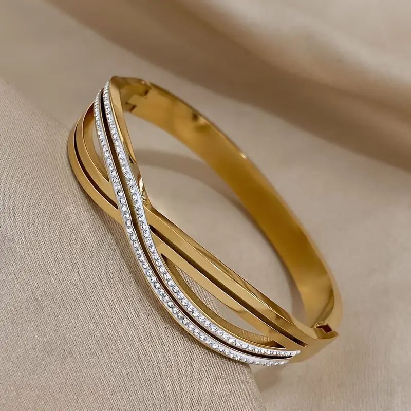 Elegant and stylish gold bracelet with Side closure. Perfect statement wear piece that can be worn to add a touch of glam to any outfit