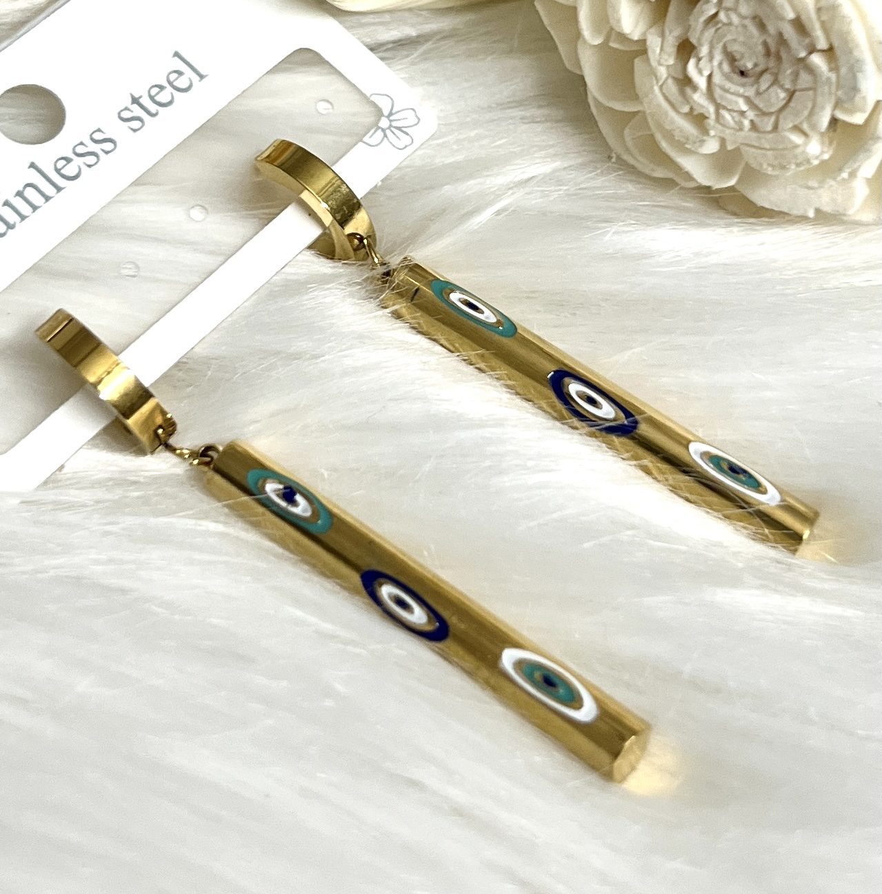 These earrings are made of stainless steel .These earrings will match any outfit and stand out in the crowd, they are true eyecatcher.