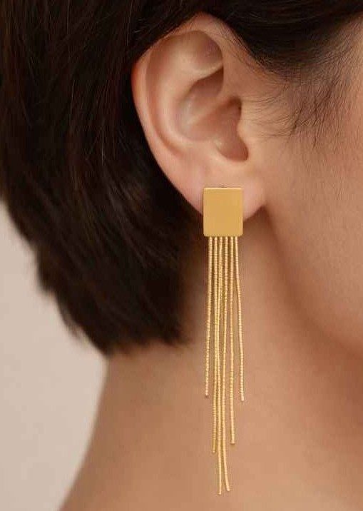 Gold-Plated Long Tassel Drop Earrings