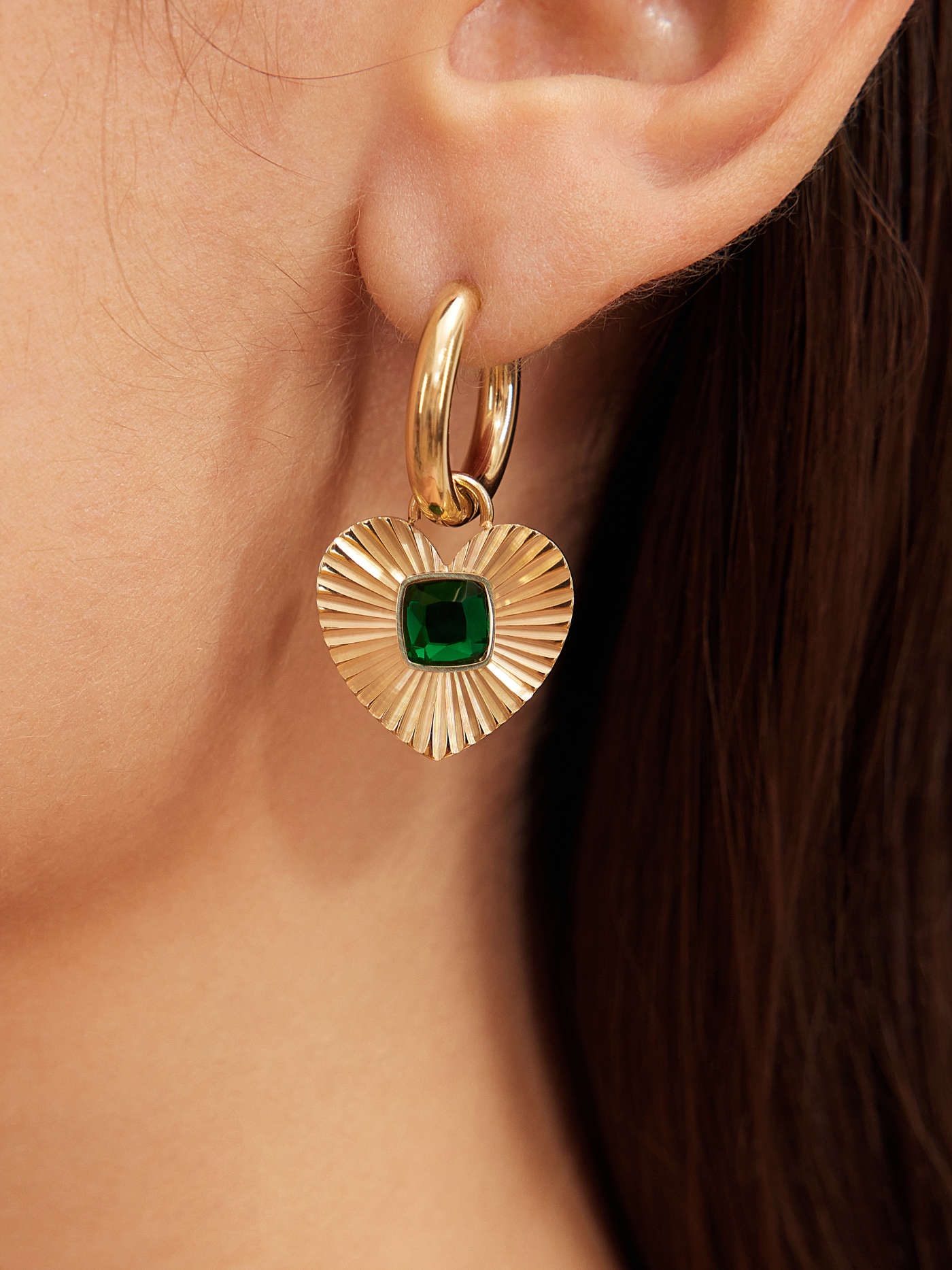 PENELOPE EMERALD HEART HOOPS