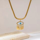 Gold Plated Round Evil Eye Protection Pendant Necklace