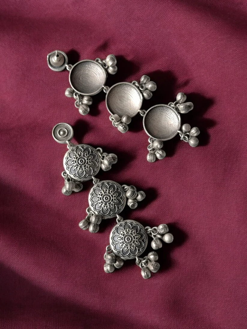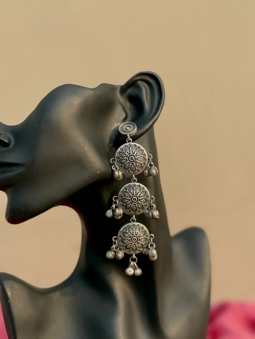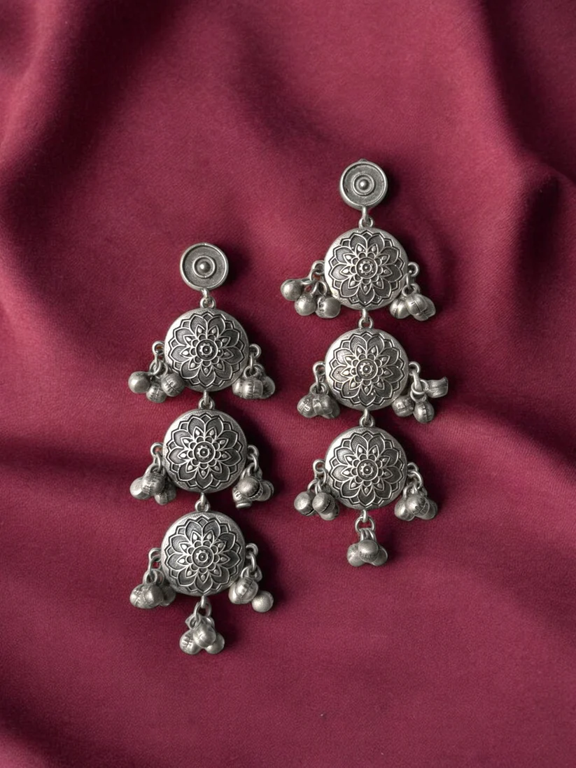 Antique Polish Oxidised Dangling Earrings
