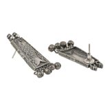 These earrings typically feature a sleek design, often incorporating minimalist or intricate details, perfect for adding a touch of sophistication to any outfit without overpowering.