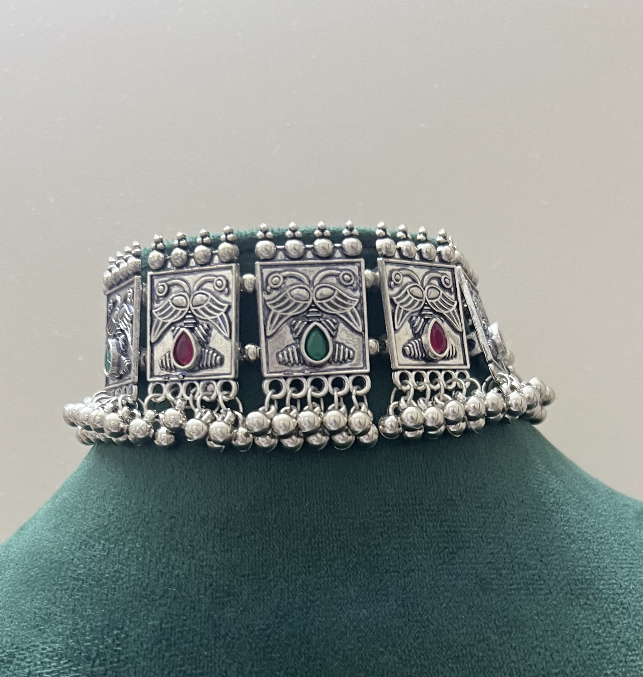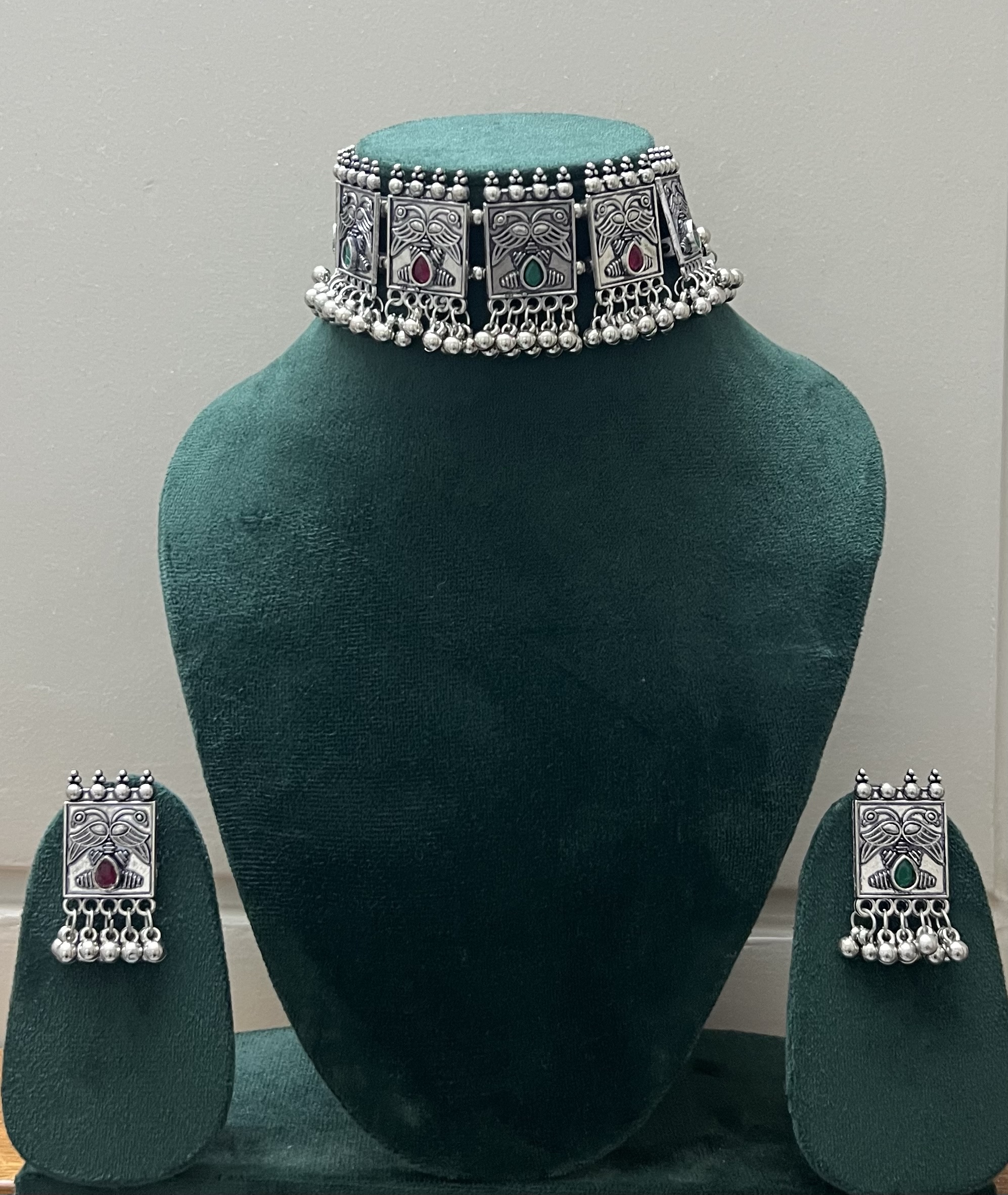 The German silver plating used when combined with the design gives a uniquely traditional look to the jewelry set.